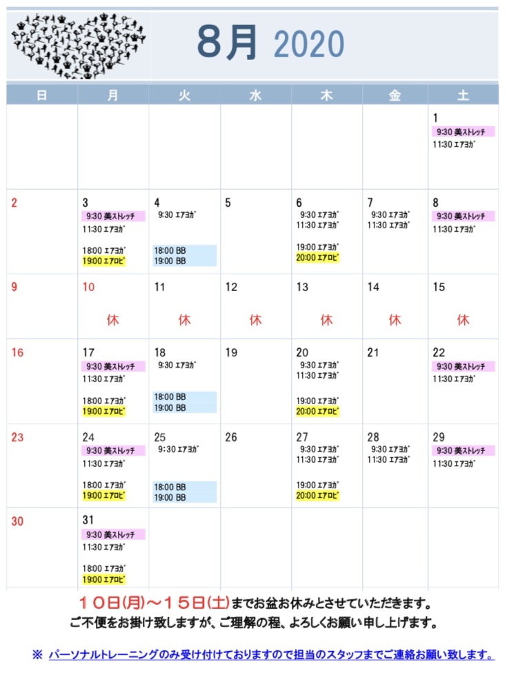 - ■2020/07/22☆8月のカルチャースケジュールとお盆休みのお知らせ☆